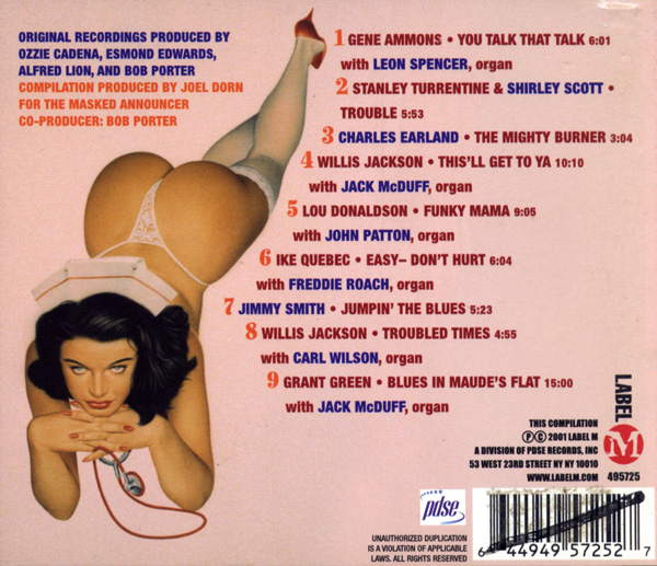 Track Listing: Gene Ammons & Leon Spencer- You Talk That Talk/ Stanley Turrentine & Shirley Scott- Trouble/ Charles Earland- The Mighty Burner/ Willis Jackson & Jack McDuff- This'll Get To Ya/ Lou Donaldson & John Patton- Funky Mama/ Ike Quebec & Freddie Roach- Easy-Don't Hurt/ Jimmy Simth- Jumpin' the Blues/ Willis Jackson & Carl Wilson- Troubled Times/ Grant Green & Jack McDuff- Blues In Maude's Flat.