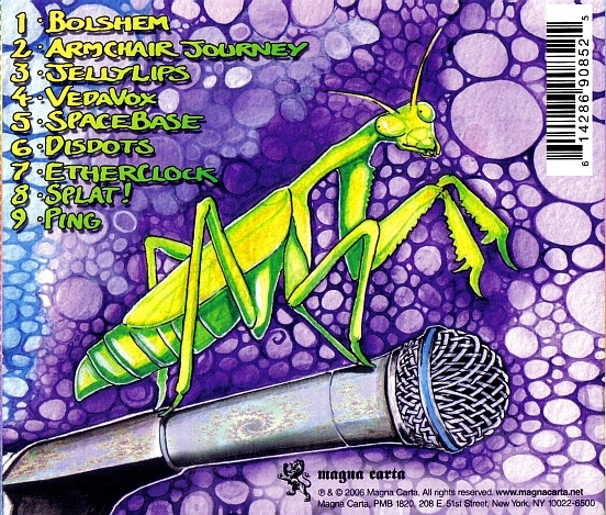 "Bolshem", so named because the band was originally known as The Bolshem People back in '82-'83, starts off not unlike something off The Hidden Step, with those sequenced synths. "Armchair Journey" has more of an ambient feel, but then the music picks up speed, and the intensity gets more as this piece continues on. "Jellylips", is more of a techno experiment that the band has been doing ever since the days they had Rad and Seaweed in the band. "Vedavox" had more of a Middle Eastern feel to it, the only piece on this CD where Ed was the only musician playing, while "Spacebase" lives up to its name, emphasizing electronic synth basses, with tons of changes, including a short passage where the band does reggae (something they have periodically done, but not on every album) turning out to be one of the album's highlights, in my opinion. "Disdots" seems much more chaotic with all sorts of things going on at once, while the band continues on with the wonderful "Etherclock". This is another one of the album's high points, and I really believe this is simply one of the finest the Ozrics done in a long time, it almost wouldn't seem out of place on an album like Erpland! "Splat!" is another one of those techno-oriented numbers. The album closes with "Ping", a nice ambient piece, with fretless bass and nice spacy synths, but the piece does pick up with Ed's usual wild guitar playing, but keeping that spacy ambient sound throughout. It's really too bad to see the band disintegrate to the point you have no idea who would be in the band this week (aside from Ed and now Brandi), but at least in the studio, Ed and whoever he gets to record with (this time with Brandi, Tom, and Metro), is still able to hold their own, and still never disappoints. Now if only the band can get a steady lineup once again, people would even be happier.